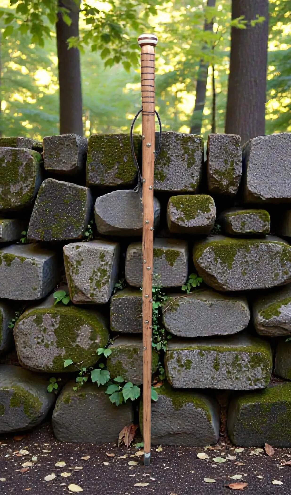 Notre modèle possède une dragonne en cuir tressé pour une bonne prise en main. Un embout en métal galvanisé avec une pointe est fixé à l’extrémité pour faciliter la marche dans toutes sortes de terrains, en campagne comme en montagne et afin de protéger l’extrémité du bâton des éventuelles cassures causées par les pierres. Des rivets à l’ancienne sont cloutés dans le bois comme sur les bâtons traditionnels des bergers pyrénéens.